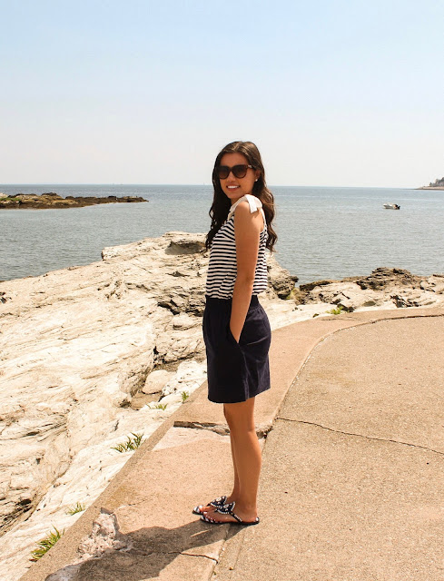 Hi everyone! Since it’s been a while, I chose to do an outfit of the day post. It’s a beautiful day out and I finally had the time (and cooperating weather) to take photos by the beach. The classic, nautical look is one that I’ve always appreciated because it looks clean and put together, especially during the summer. Over the past few months, navy has become a neutral for me and a shade of blue I often choose when styling basic pieces. As an avid stripes wearer, I couldn’t resist this adorable top from J.Crew Factory when it went on sale a few days ago or these striped Jack Rogers sandals to complete the look!