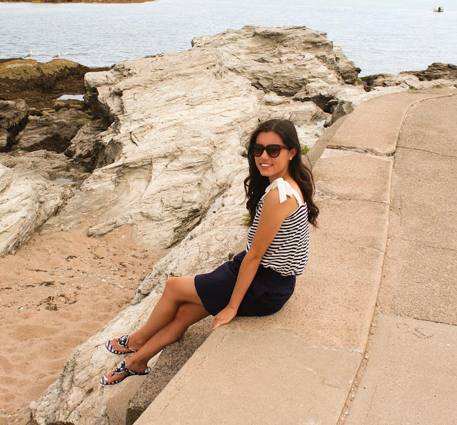 Hi everyone! Since it’s been a while, I chose to do an outfit of the day post. It’s a beautiful day out and I finally had the time (and cooperating weather) to take photos by the beach. The classic, nautical look is one that I’ve always appreciated because it looks clean and put together, especially during the summer. Over the past few months, navy has become a neutral for me and a shade of blue I often choose when styling basic pieces. As an avid stripes wearer, I couldn’t resist this adorable top from J.Crew Factory when it went on sale a few days ago or these striped Jack Rogers sandals to complete the look!